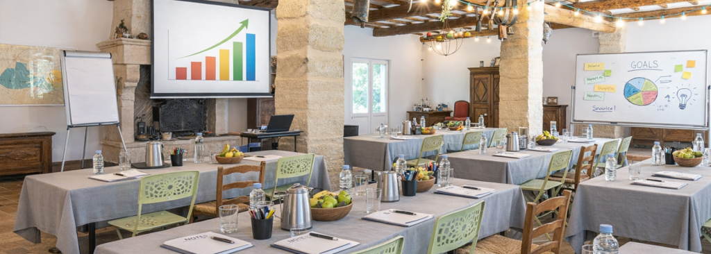 La bodega ofrece un entorno perfecto para la organización de seminarios profesionales, combinando autenticidad, confort y eficacia. Su espacio de 150 m² favorece los intercambios, la cohesión de equipo y la concentración, en un ambiente informal y acogedor.